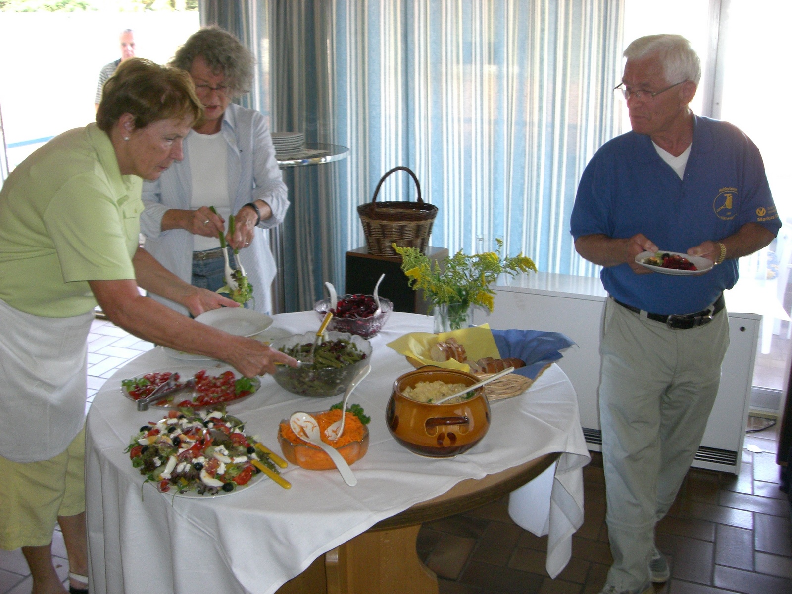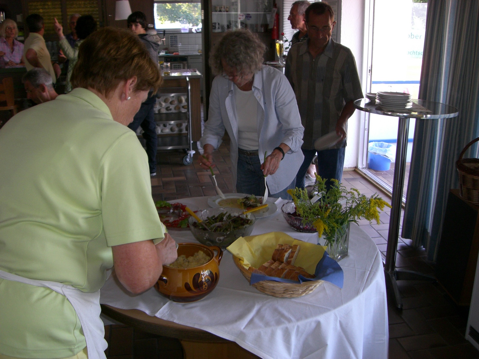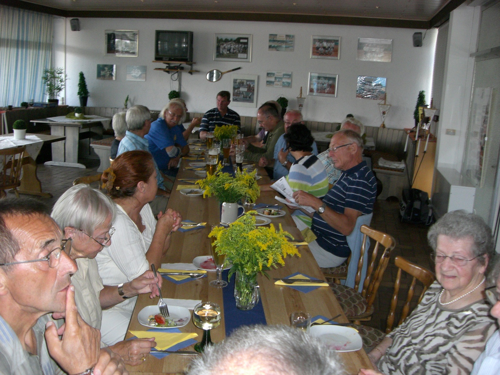 Das Wirtschaftsteam Kraus und Kurapkat hatte wieder die Mitglieder zur Teilnahme am Traditionsessen eingeladen und nach anfangs zögerlichen Eintragungen in der Meldeliste hatten doch noch 27 Teilnehmer den Weg ins Clubhaus gefunden. Als Vorspeise gab es ein buntes Salatbüffet welches allen vortrefflich mundete. In der Zwischenzeit wurden von Fred und Emmi die ersten