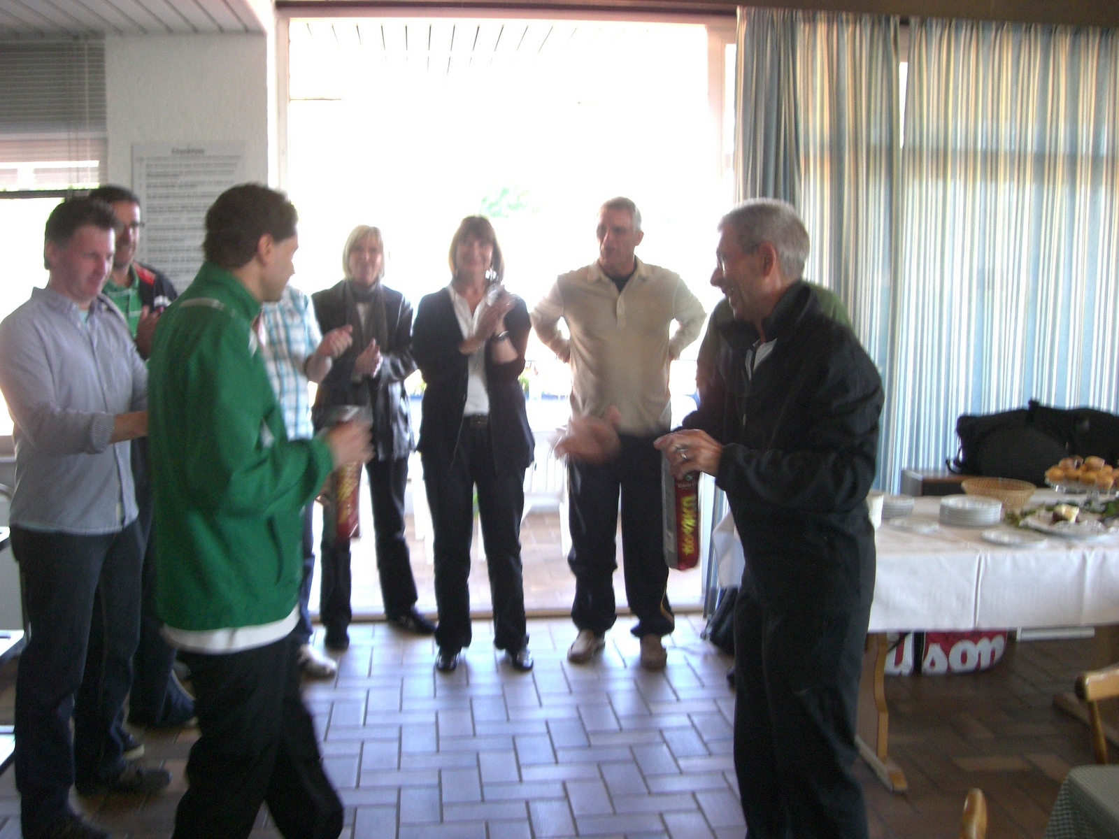 Gegen 11.30 Uhr begann dann bei strahlendem Sonnenschein  das beliebte „Schleifchenturnier„ bei  dem alle Altersklassen von 15 bis über 70 Jahre vertreten waren. Karl Towae hatte bereits die Start- Auslosung vorgenommen und nach kurzer Einspielzeit ging es dann richtig los. Insgesamt wurden  6 Mixed- Runden gespielt und gegen 15 Uhr standen die erfolgreichsten Teilnehmer fest. Mit 5 gewonnenen Spielen wurde Heiderose Kraus vor  Ulla Schulz Turniersiegerin, bei den Herren wurde als Neuling Ralf Fleckenstein mit weiteren 5 punktgleichen  Spielern zum Sieger erklärt. Alle 20 Teilnehmer waren begeistert von der sehr fair geführten Veranstaltung und bedauerten, dass die Freiluftsaison allmählich dem Ende zugeht.