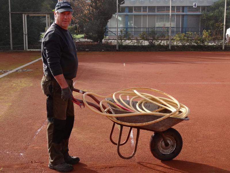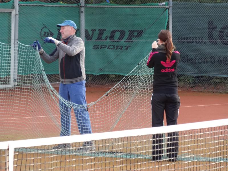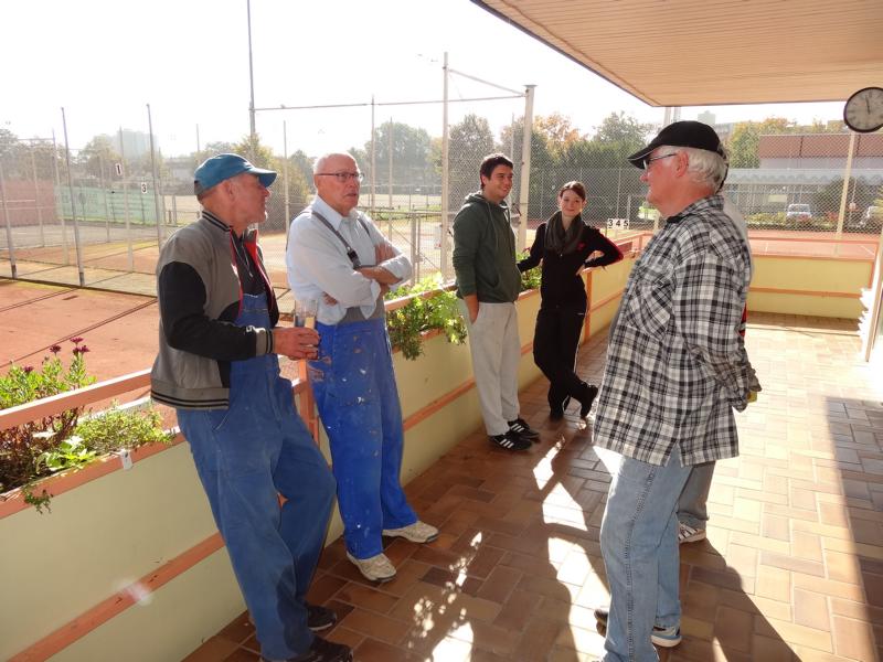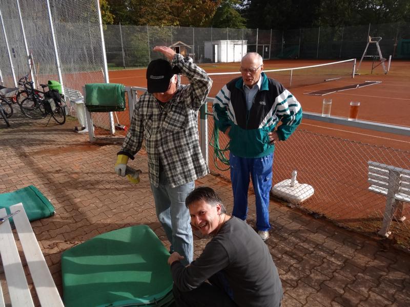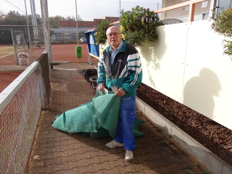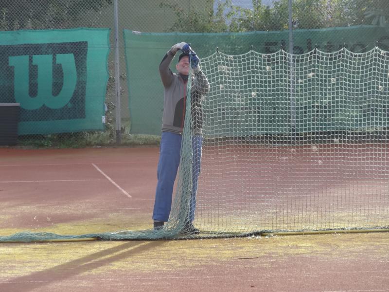 beim diesjährigen Herbstarbeitseinsatz am 18.10. wurde durch die wenigen Helferinnen und Helfer (9) in kürzester Zeit alle notwendigen Arbeiten, wie z.B. dem Abhängen der Sichtschutzplanen und Tennisnetze, Einsammeln der Platzpflegeutensilien, das Entleeren der Beregnungsanlage und der Reinigung des Kinderspielplatzes vom Laub (wie man am Ergebnis sieht) durchgeführt.