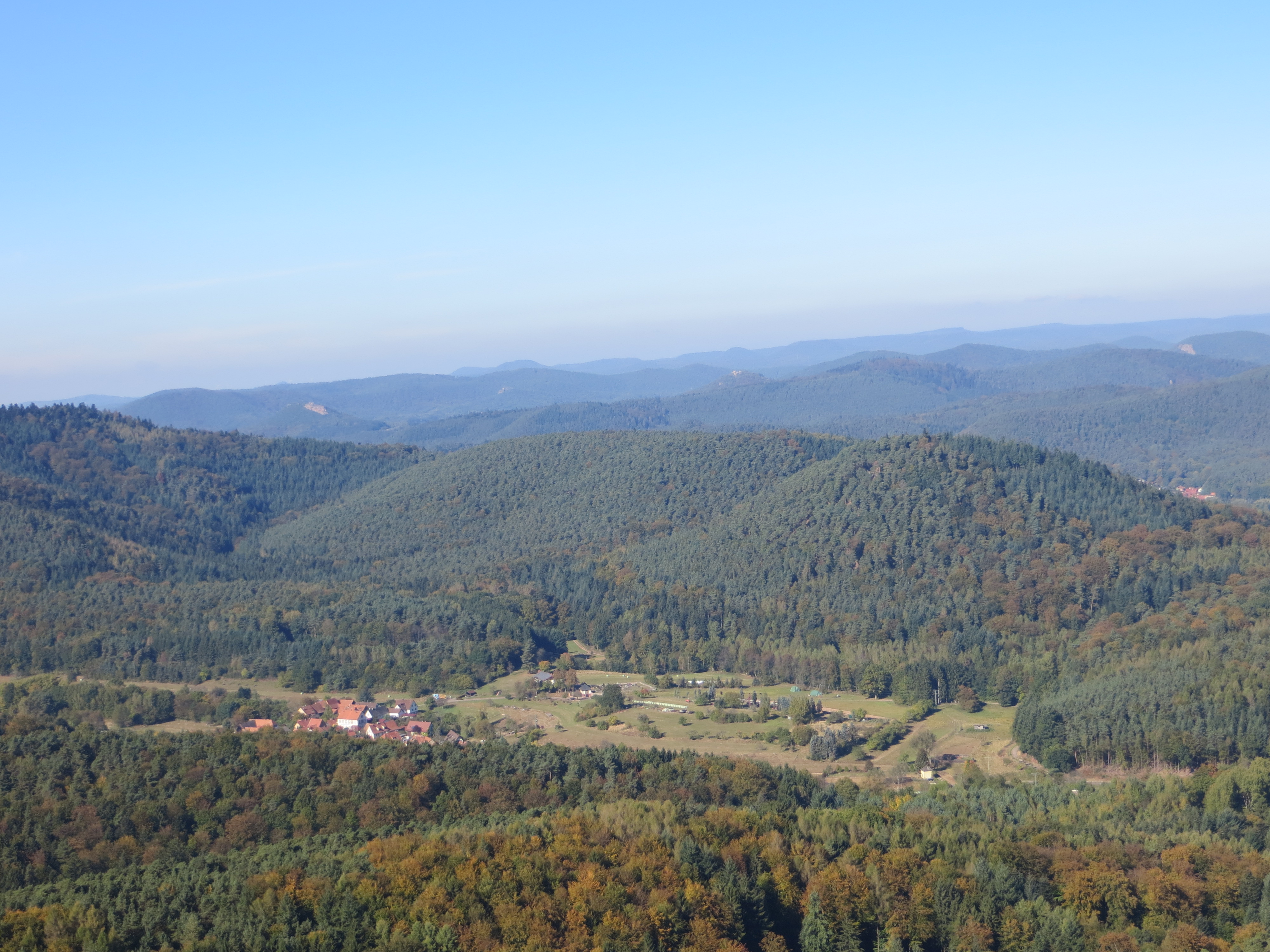 Um 10:30 , Wörth noch in Nebel gehüllt, machte sich die Wandergruppe am Sonntag, den 16. Oktober mit den Autos auf den Weg nach Dörrenbach . Erstmals hatte sich Wanderführer Gerhard Scherrer diese südöstliche Ecke des Pfälzer Walds als Wandergebiet ausgesucht. In Dörrenbach angekommen war der Nebel, wie gehofft, auch verschwunden.