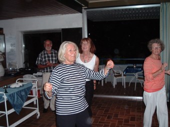 Zögerlich aber stetig steigerte sich die Tanzbegeisterung und dank unseres hervorragenden Musikus, der mit sicherem Gespür mit Oldies der 60ziger Jahre auch fast den letzten Tanzmuffel aus der Reserve lockte, rann der Schweiß in Strömen. Um uns wieder etwas Atem holen zu lassen, trug unser Allrounder Mundartgedichte vor und natürlich durften einige Hagenbacher Witze nicht fehlen. Und weiter ging es mit Mandosino, Rivers of Babylon, Skandal um Rosi … Zeitweise beherrschten unsere Damen die Tanzfläche völlig und als sich Mitternacht näherte waren die Tanzhexen nicht mehr zu halten. Ihre Urschreie übertönten sogar die vom Bavaria-Clubhaus herüber dröhnenden Bässe.
