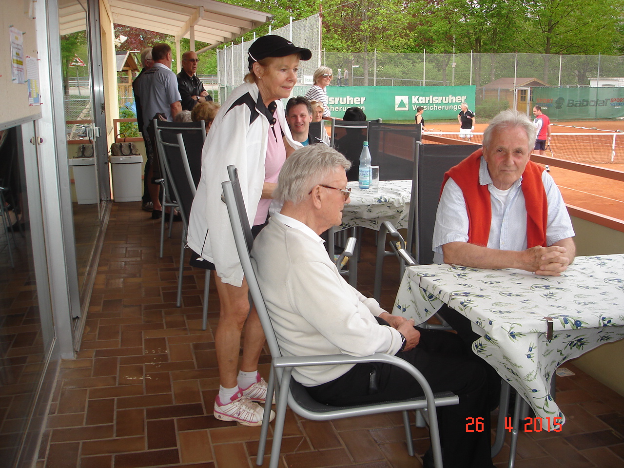 Um 12.30 ging es dann endlich los, die ersten scharrten schon mit den Hufen und schwangen bedrohlich ihre Schläger. Die Spielerpaarungen wurden ausgelost, leider musste immer ein Paar eine Runde aussetzen. Nach kurzer Einspielzeit wurde es „Ernst“, alle waren bis in die Zehenspitzen hochmotiviert und gaben ihr Bestes. Nach jeweils 25 Spielminuten wurden die Paarungen getrennt, wobei das Siegerpaar jeweils ein Schleifchen erhielt und getrennt auf dem Platz verblieb, das Verliererpaar trabte zum nächsten Platz. Nach 3 Runden waren die Akkus leer und mussten bei Kaffee und Kuchen wieder aufgeladen werden. Um 16.00, nach 6 Runden standen die Sieger fest. Bei den Herren konnten sich punktgleich die ungekrönten Sandplatzkönige Salih Can Arioglu und Thomas Bütenmeister mit den meisten Schleifchen durchsetzen, gefolgt von Gerhard Dischler. Bei den Damen waren Ulla Jung und Heiderose Kraus am erfolgreichsten.