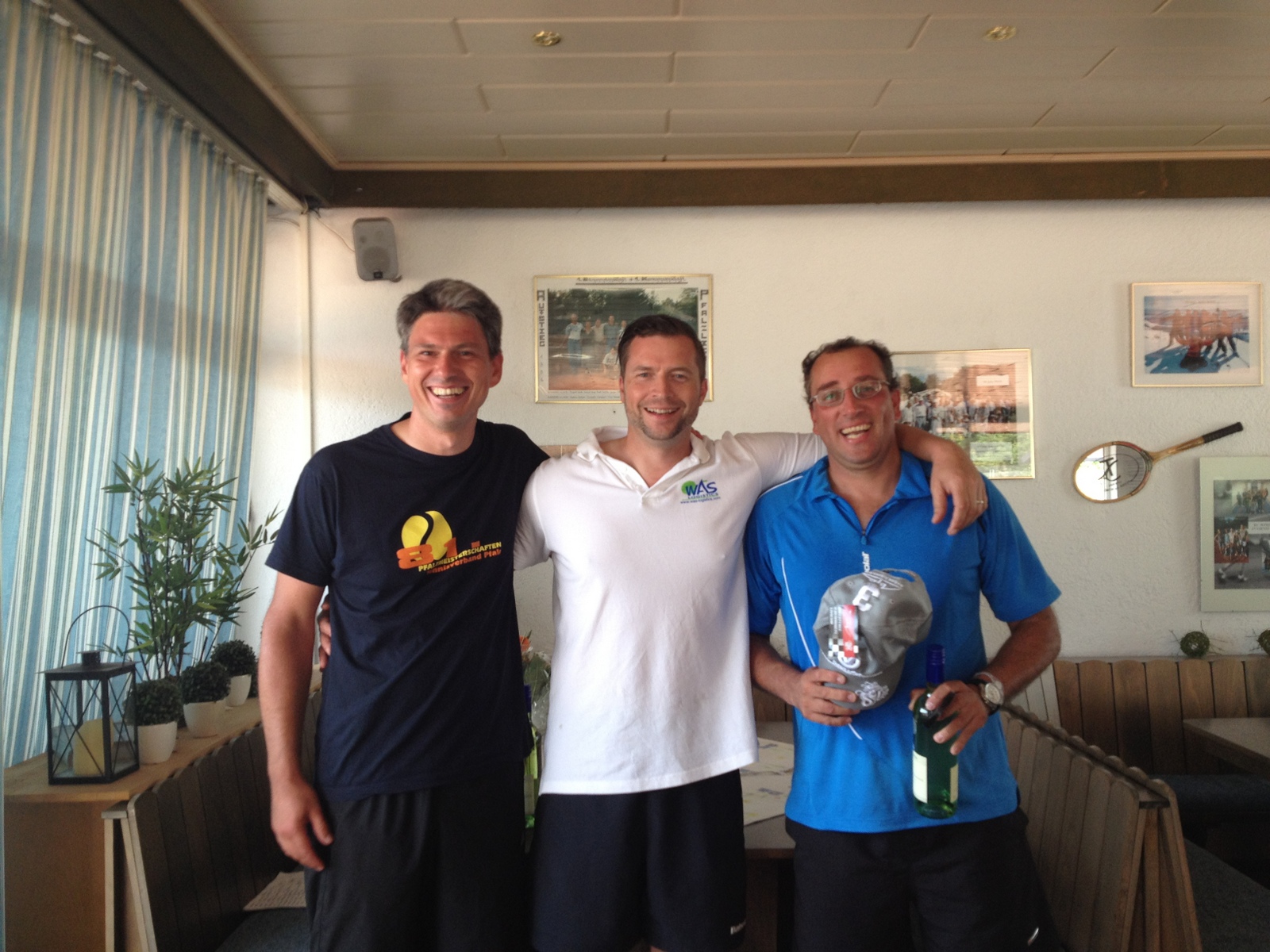 Wir haben einen neuen Clubmeister! Nach 2 wöchigem Wettkampf unter 28 Teilnehmerinnen und Teilnehmern in teilweise hauchdünnen Auseinandersetzungen auf dem Tennisplatz trafen sich am Sonntag die Finalisten der Herrenbegegnungen. Unter den Augen zahlreicher Zuschauer konnte sich im Endspiel der Nebenrunde Salih Can Arioglu gegen Uwe Kempf mit 6:2 und 6:1 durchsetzen. Ein Zeichen dafür, dass die Jugendarbeit des TCW Früchte trägt. Das Endspiel der Hauptrunde bestritten, wie von vielen vorausgesagt, die langjährigen Leistungsträger des Vereins, die uns auch bei größeren Turnieren immer wieder sportlich vertreten, Markus Rudolph und Axel Schulz. Nach fast 2 Stunden höchst unterhaltsamem Sport und mitreisenden Ballwechseln konnte sich letztendlich Axel knapp mit 7:5 und 6:4 durchsetzen. Seine „Krönung“ in der anschließenden Siegerehrung nahm unser 1. Vorsitzender Axel Schmitz vor und überreichte auch den anderen genannten Spielern Sachpreise, die unsere Sponsoren freundlicherweise zur Verfügung stellten.