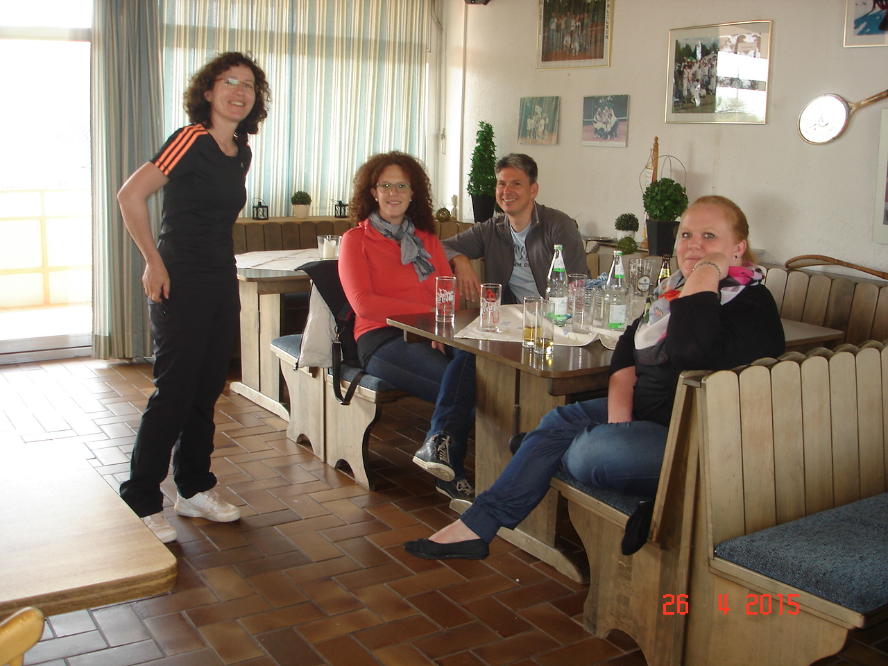 Um 12.30 ging es dann endlich los, die ersten scharrten schon mit den Hufen und schwangen bedrohlich ihre Schläger. Die Spielerpaarungen wurden ausgelost, leider musste immer ein Paar eine Runde aussetzen. Nach kurzer Einspielzeit wurde es „Ernst“, alle waren bis in die Zehenspitzen hochmotiviert und gaben ihr Bestes. Nach jeweils 25 Spielminuten wurden die Paarungen getrennt, wobei das Siegerpaar jeweils ein Schleifchen erhielt und getrennt auf dem Platz verblieb, das Verliererpaar trabte zum nächsten Platz. Nach 3 Runden waren die Akkus leer und mussten bei Kaffee und Kuchen wieder aufgeladen werden. Um 16.00, nach 6 Runden standen die Sieger fest. Bei den Herren konnten sich punktgleich die ungekrönten Sandplatzkönige Salih Can Arioglu und Thomas Bütenmeister mit den meisten Schleifchen durchsetzen, gefolgt von Gerhard Dischler. Bei den Damen waren Ulla Jung und Heiderose Kraus am erfolgreichsten.